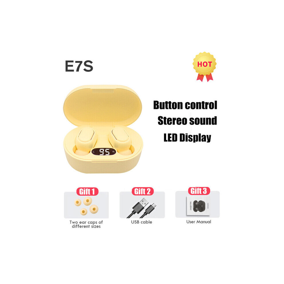 (a-Yellow) TWS E7S Air Fone Bluetooth Earphones Wireless Headphones for Xiaomi Noise Cancelling Earbuds with Mic Wireless Bluetooth Headset