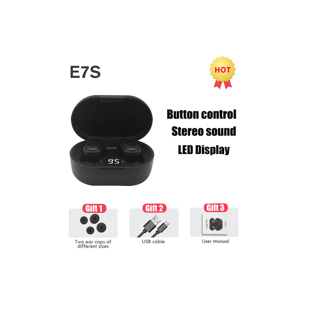(a-Black) TWS E7S Air Fone Bluetooth Earphones Wireless Headphones for Xiaomi Noise Cancelling Earbuds with Mic Wireless Bluetooth Headset