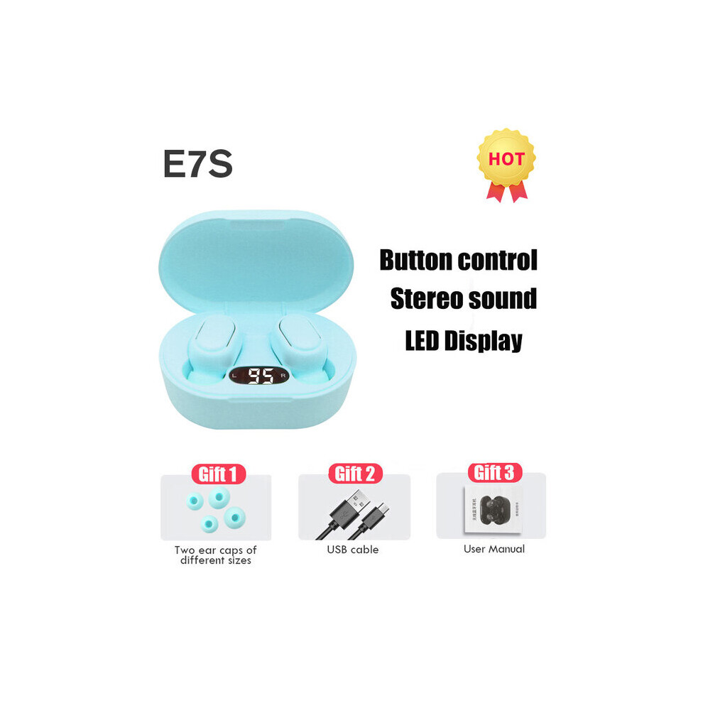 (a-Blue Earbuds) TWS E7S Air Fone Bluetooth Earphones Wireless Headphones for Xiaomi Noise Cancelling Earbuds with Mic Wireless Bluetooth Headset