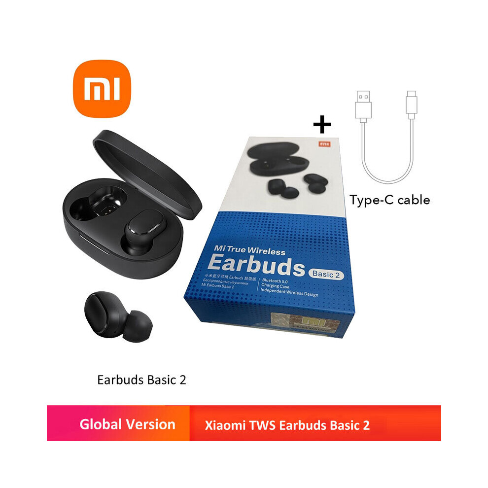 (a-With Type C Cable) Xiaomi Redmi Mi True Wireless Earbuds Basic 2 Fone Bluetooth 5.0 Earbuds Touch Control TWS Earphone Gaming Mode Headphone