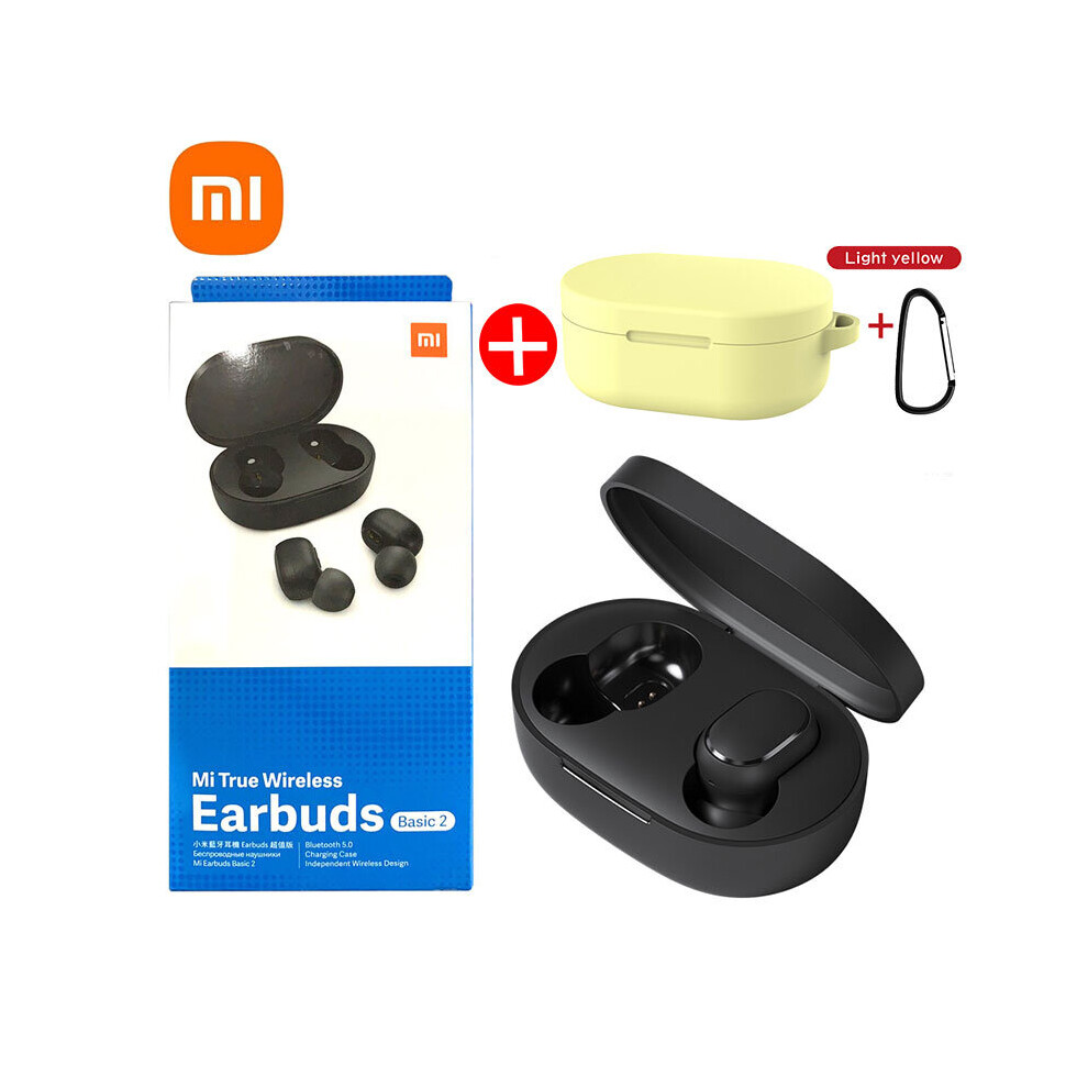 (a-Light Yellow Case) Xiaomi Redmi Mi True Wireless Earbuds Basic 2 Fone Bluetooth 5.0 Earbuds Touch Control TWS Earphone Gaming Mode Headphone