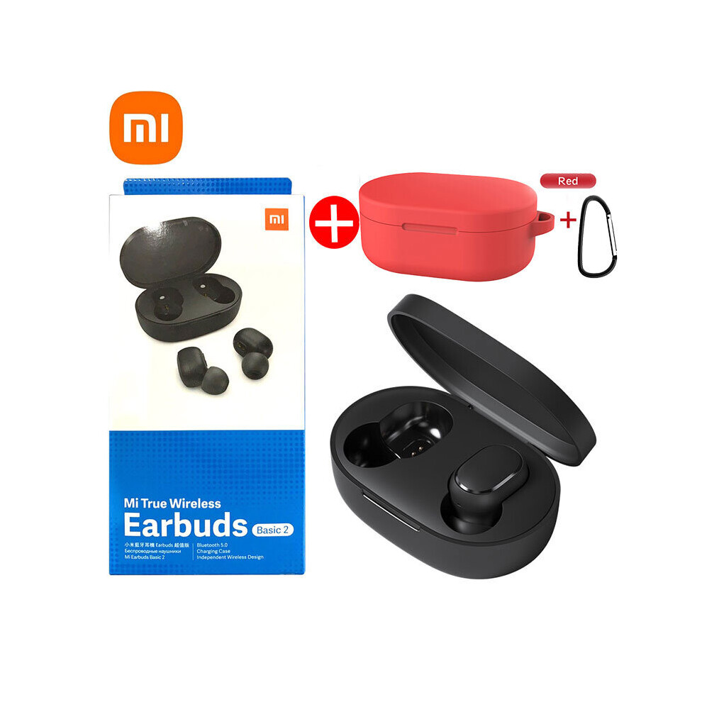 (a-With Red Case) Xiaomi Redmi Mi True Wireless Earbuds Basic 2 Fone Bluetooth 5.0 Earbuds Touch Control TWS Earphone Gaming Mode Headphone