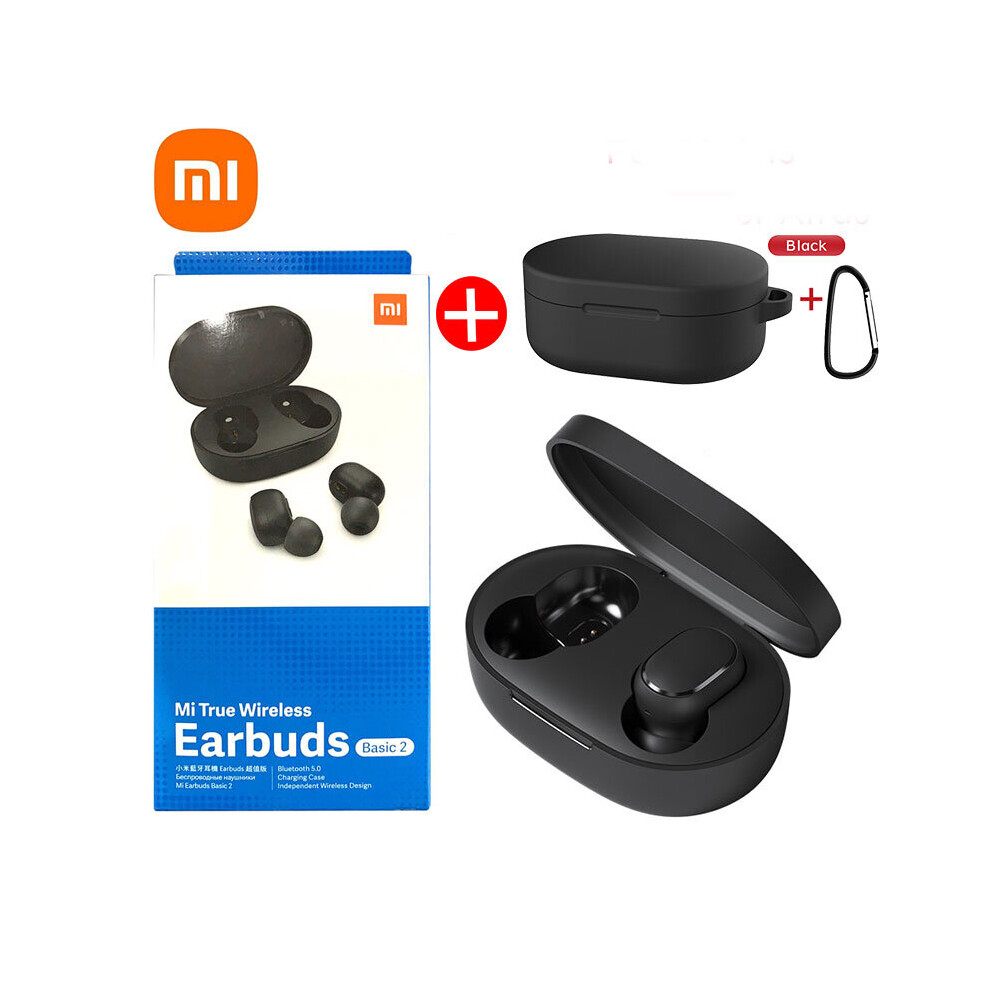 (a-With Black Case) Xiaomi Redmi Mi True Wireless Earbuds Basic 2 Fone Bluetooth 5.0 Earbuds Touch Control TWS Earphone Gaming Mode Headphone
