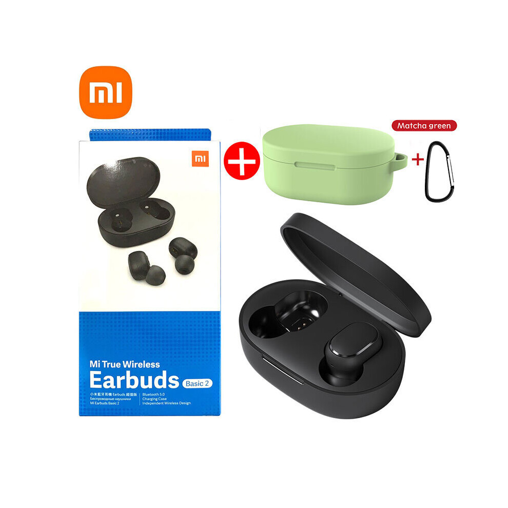 (a-Matcha Green Case) Xiaomi Redmi Mi True Wireless Earbuds Basic 2 Fone Bluetooth 5.0 Earbuds Touch Control TWS Earphone Gaming Mode Headphone