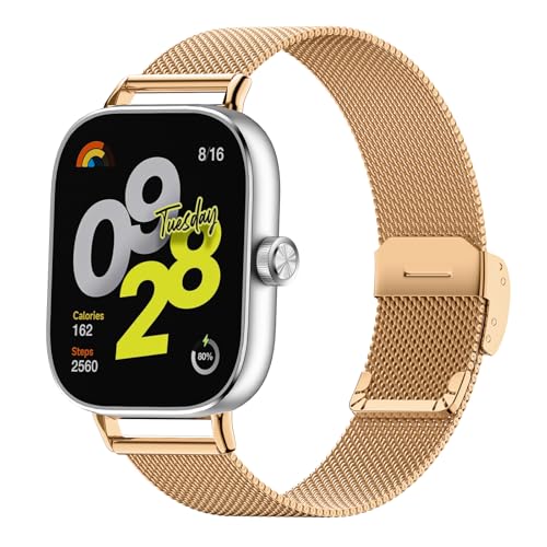 PaceBid 22mm Metal Straps for Xiaomi Redmi Watch 5 Active/Watch 5 Lite, Stainless Steel Metal with Magnetic Milanese Loop Replacement Watch Band for Xiaomi Redmi Watch 5 Lite/5 Active - Rose Gold