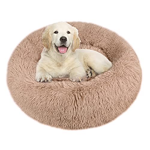 Comfy Calming Dog Beds Large Washable,Anti Anxiety Donut Ped Bed,Luxury Warm Fluffy Improved Sleep Amazingly Cat Bed Cuddler,Anti-Slip Bottom Round Puppy Bed for Small Medium Cat Dog(XL,Beige Brown)