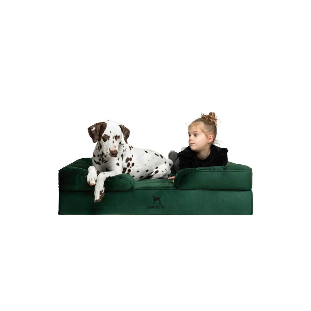 Bedsure Extra Large Dog Sofa Bed - Washable Orthopedic Dog Beds and Couch with Removable Flannel Zipper Cover, XL Waterproof Human Dog Bed, Dark Green Squre Pet Bed, 106x80x16cm
