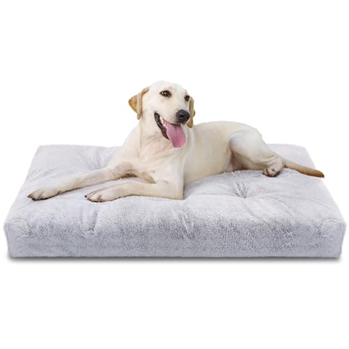 Nobleza Extra Large Dog Bed,Ultra Soft Thick XL Dog Beds Large Washable, Fluffy Calming Anti Anxiety Dog Crate Mattress Bed, Deluxe Plush Dog Mat with Anti-Slip Bottom, Grey, 110x73x10cm