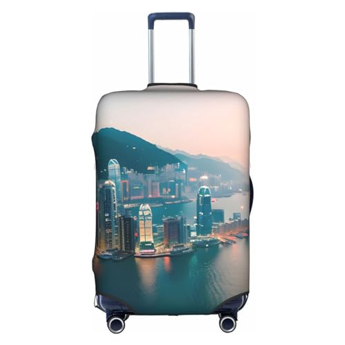 LLOTPQ XL Suitcase Cover Protector – Aerial Night of View Hong Kong Print Luggage Case for Women & Girls, Travel Accessories, Aesthetic Tags