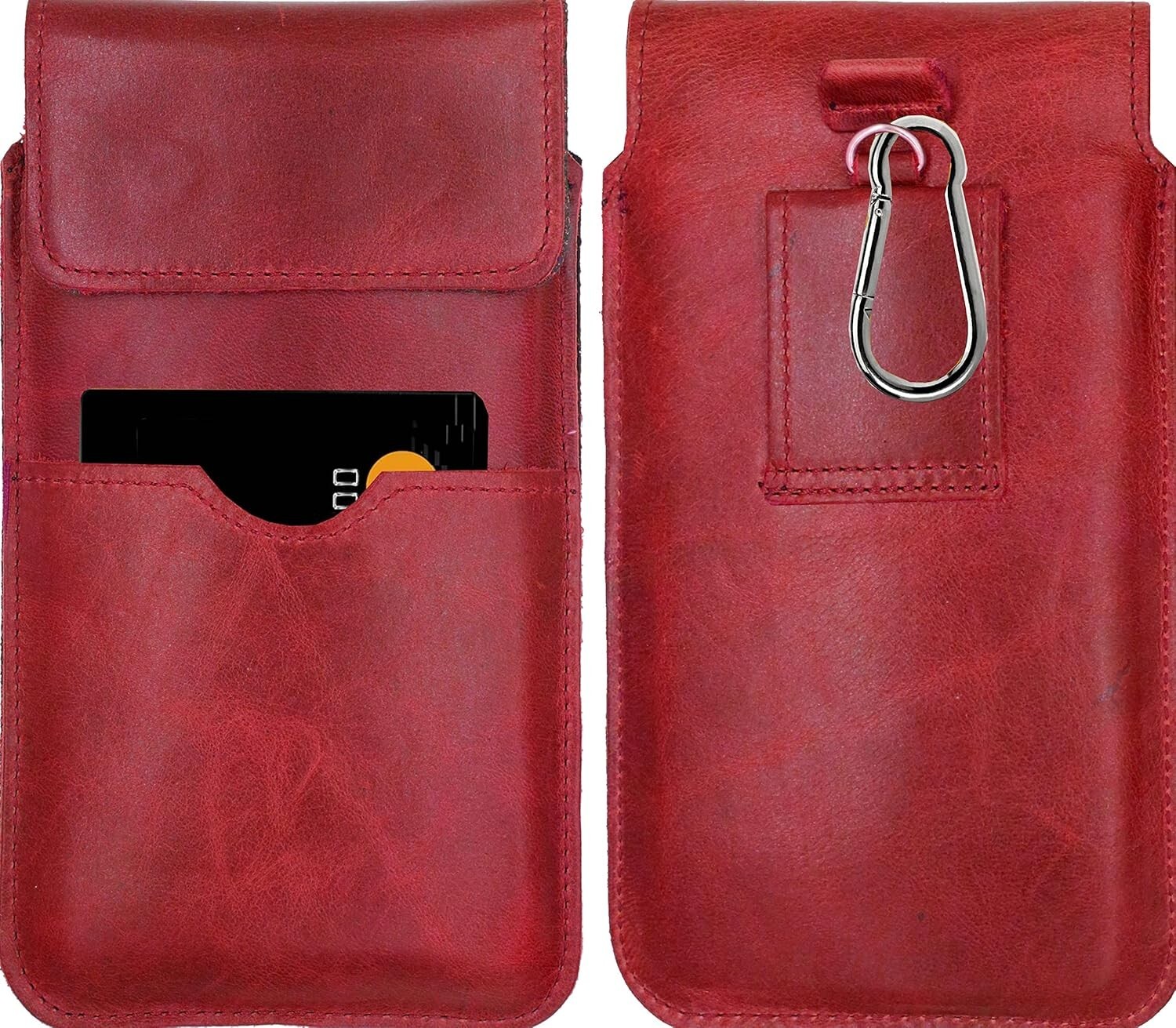 Genuine Leather Hip Belt Bag For Cubot KingKong Ace 2 Protective Case XL Red