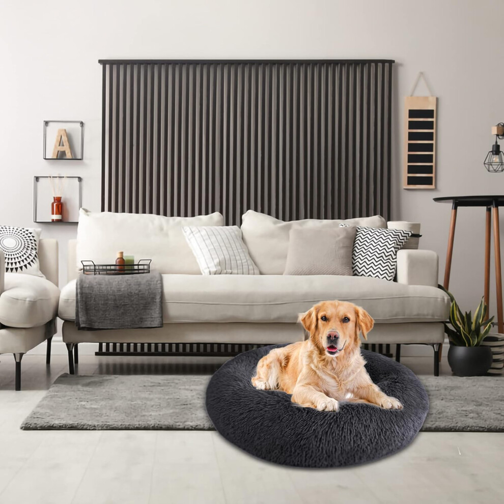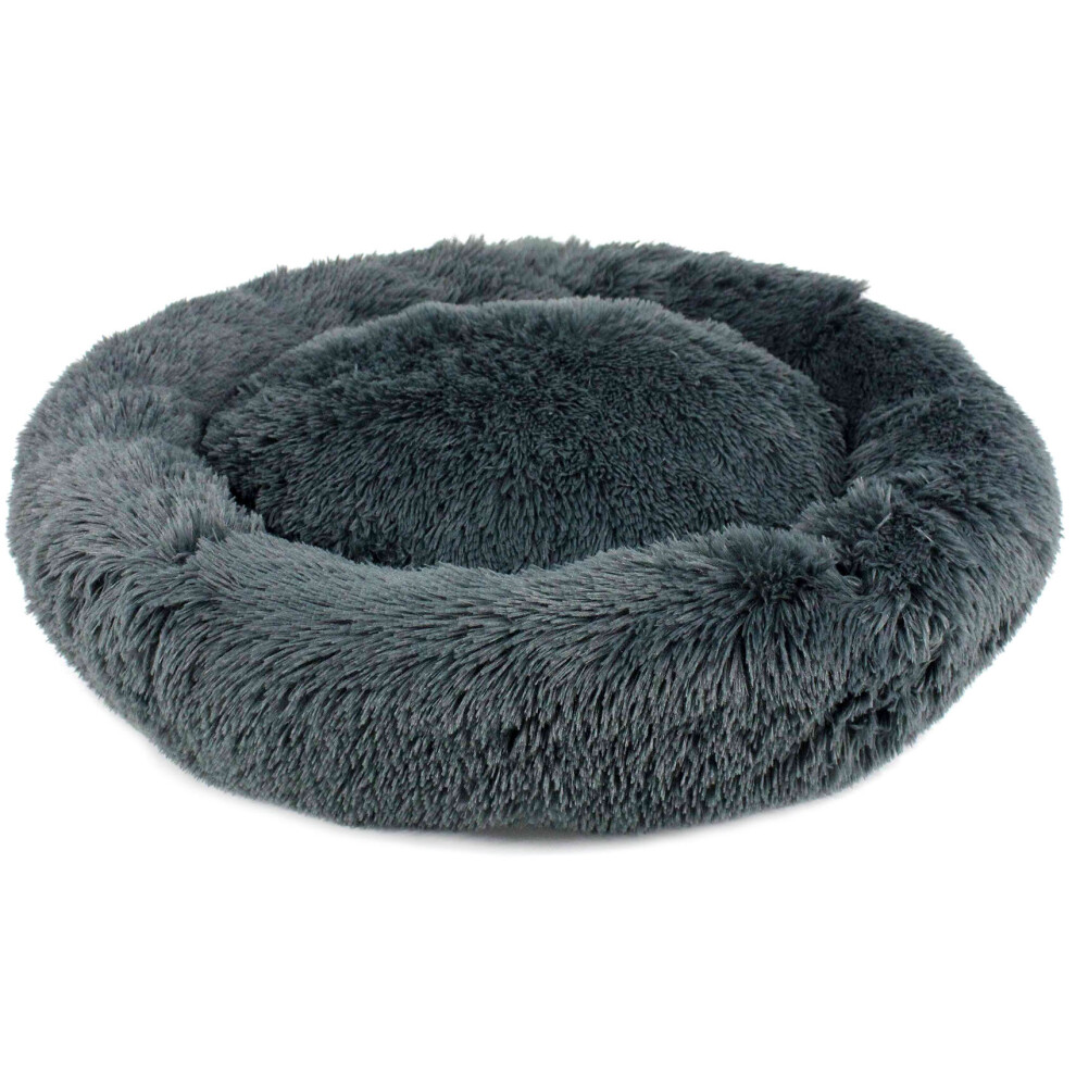 X-Large Dog Bed Fluffy Donut Cushion,Dark Grey