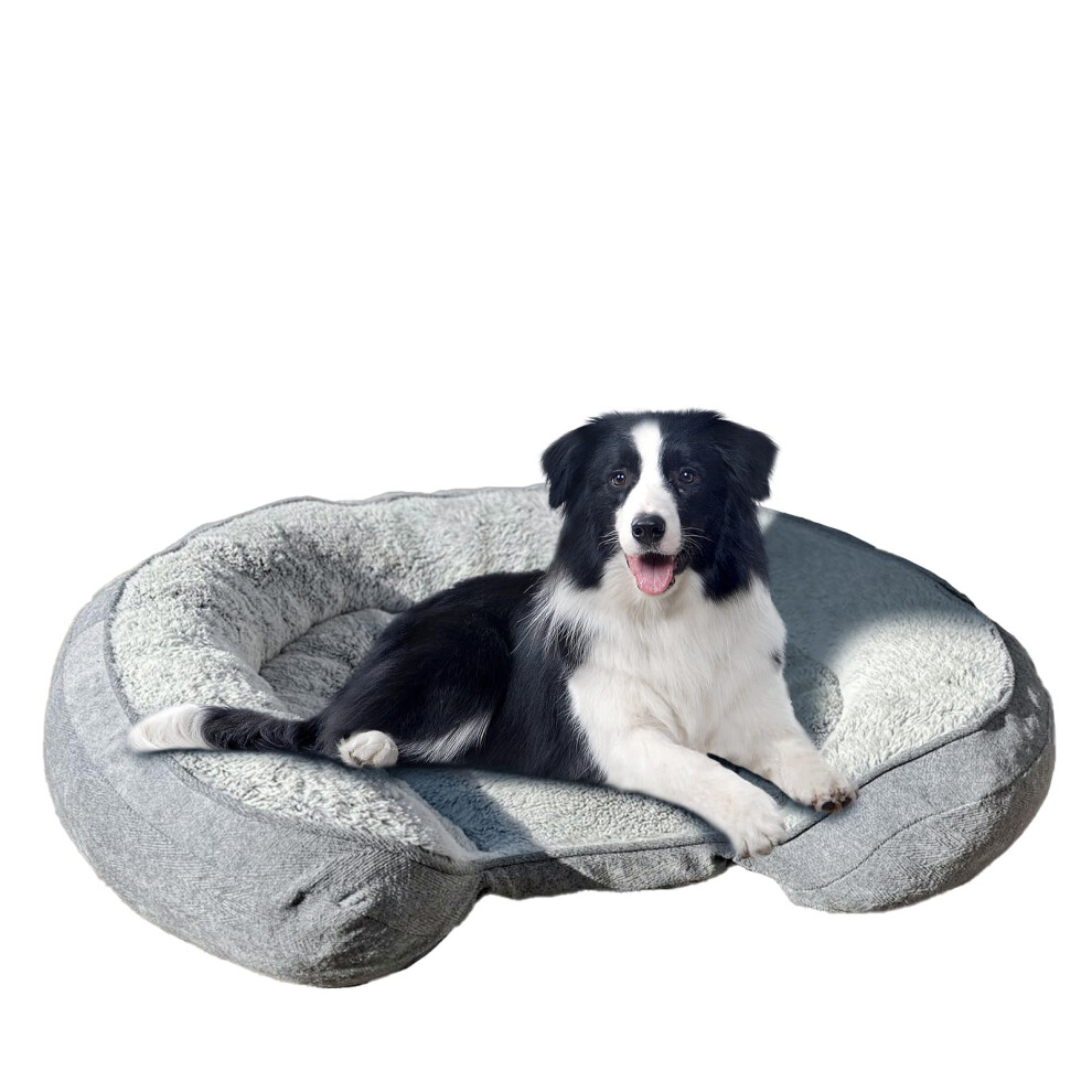Oval Dog Bed with Removable Cover and AntiSlip Bottom Washable Cozy HighDensity Shed Foam for Large Dogs Soft Calming Pet Bed (Gray, XLarge)
