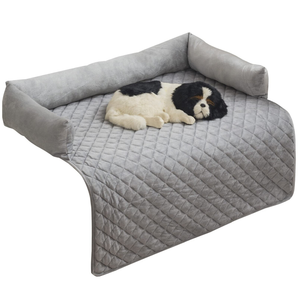 Pet Dog Sofa Bed with Supportive Bolster, NonSlip Machine Washable (XLarge, Light Grey)