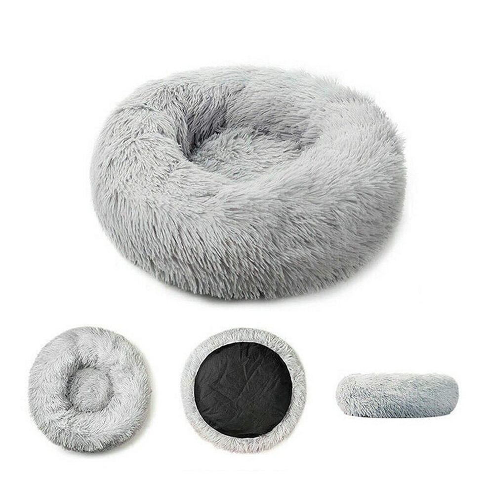 (Light-gray, X-Large) Plush Donut Pet Bed Dog Cat Round Nest Puppy Sofa