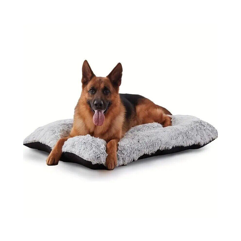(Light Grey, XLarge (109 X72 CM)) Warm Plush Dog Bed Mat Washable Calming Cushion for Pet Puppy For Large Dog Cat