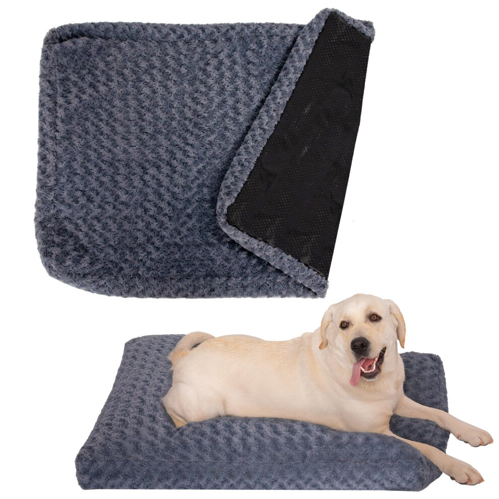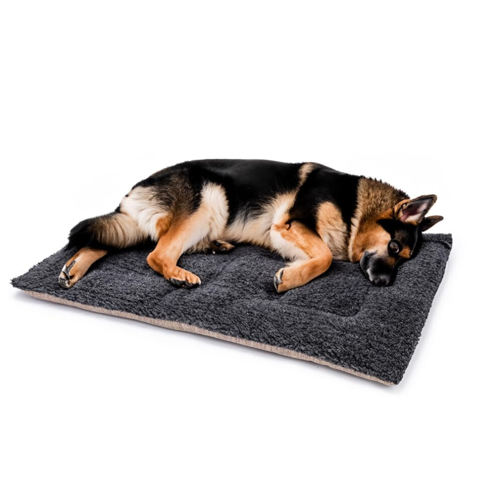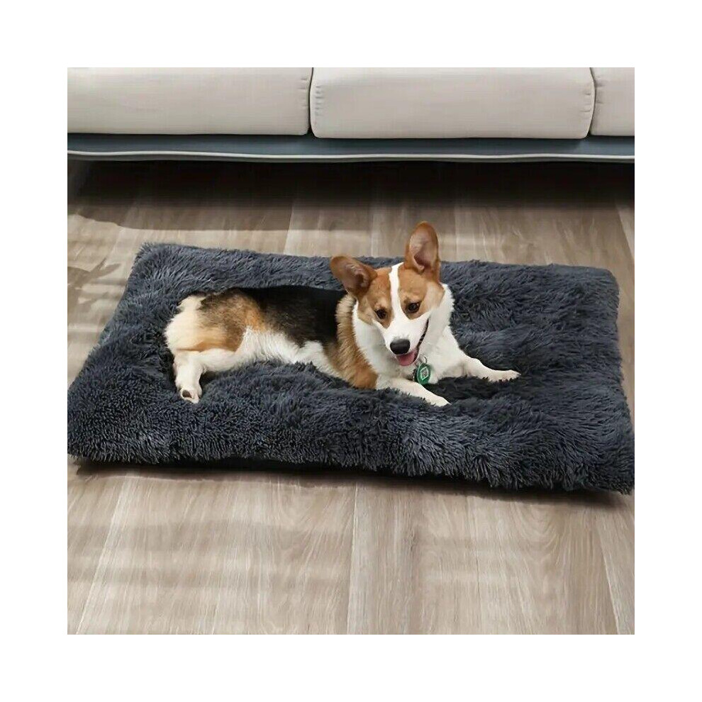 (Dark Grey, XLarge (109 X72 CM)) Warm Plush Dog Bed Mat Washable Calming Cushion for Pet Puppy For Large Dog Cat