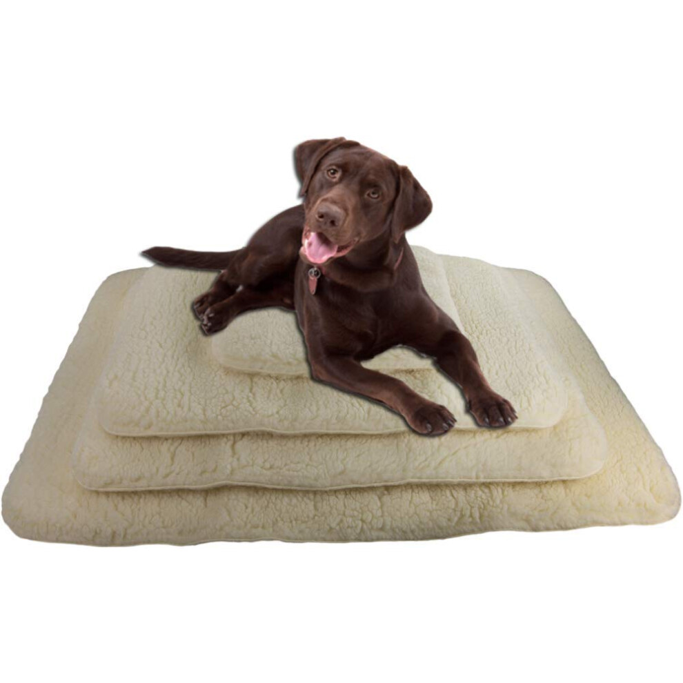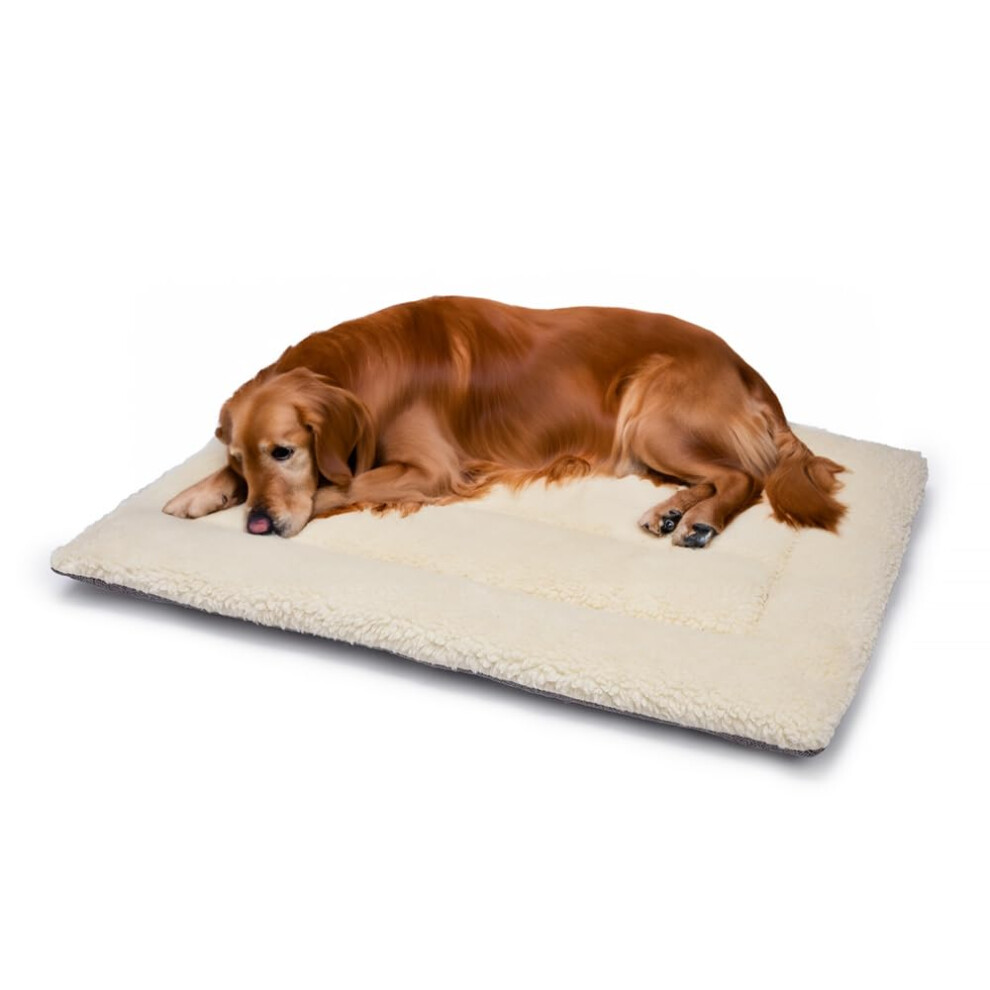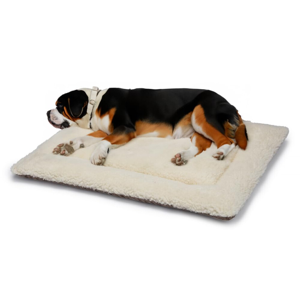 British Wool Dog Bed for Dogs - Machine Washable Quilted Cage Pad with Tweed Base, Luxurious XLarge Dog Bed (121x76cm) - Made in England