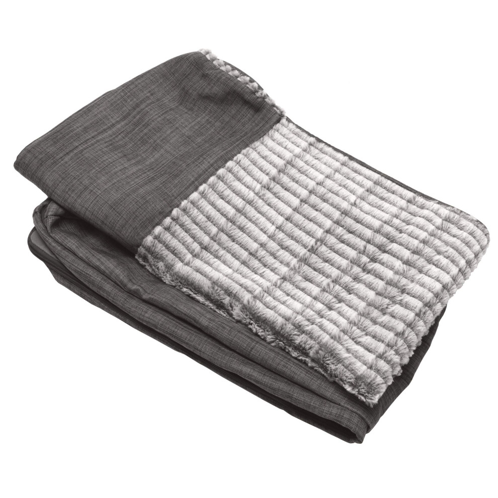 Furhaven Replacement Dog Bed Cover Luxe Faux Fur & Performance Linen Sofa-Style Machine Washable - Charcoal Jumbo (X-Large)