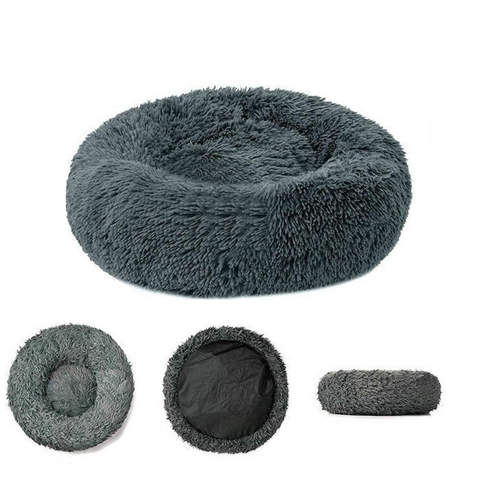 (Deep-gray, X-Large) Plush Donut Pet Bed Dog Cat Round Nest Puppy Sofa