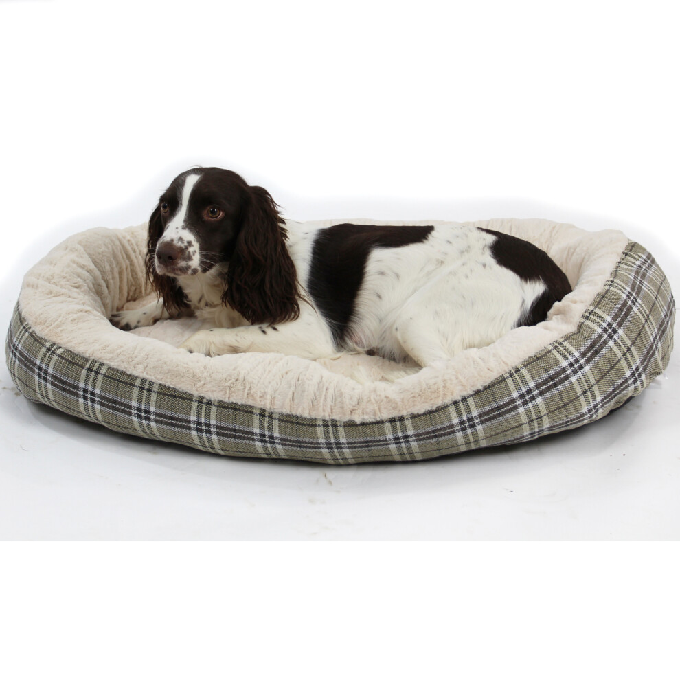 Dog bed with Orthopaedic Fleece Lining in Jute plaid XLarge Actiaspet