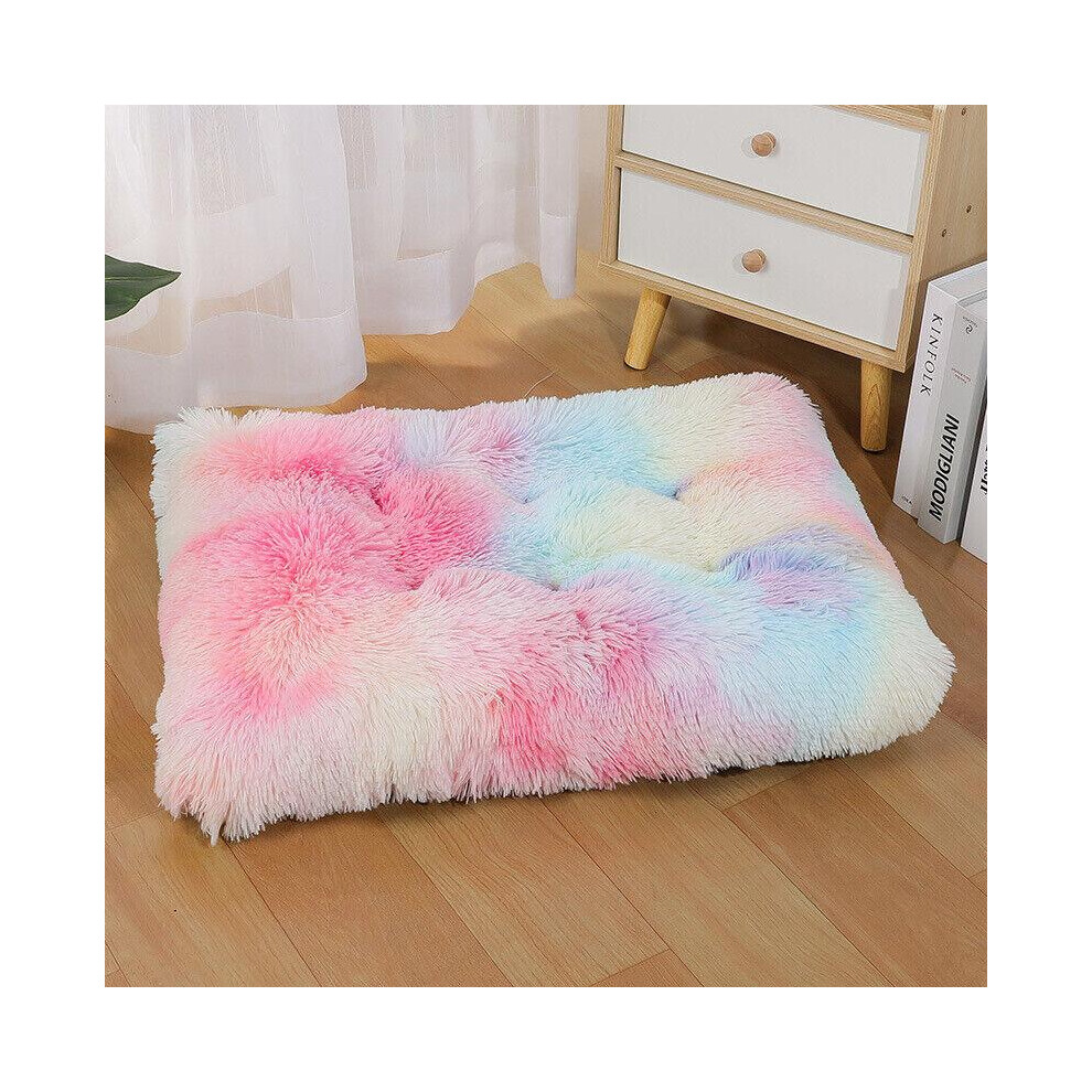 (Rainbow, XLarge (109 X72 CM)) JupiterJX Warm Plush Dog Bed Mat Washable Calming Cushion for Pet Puppy For Large Dog Cat