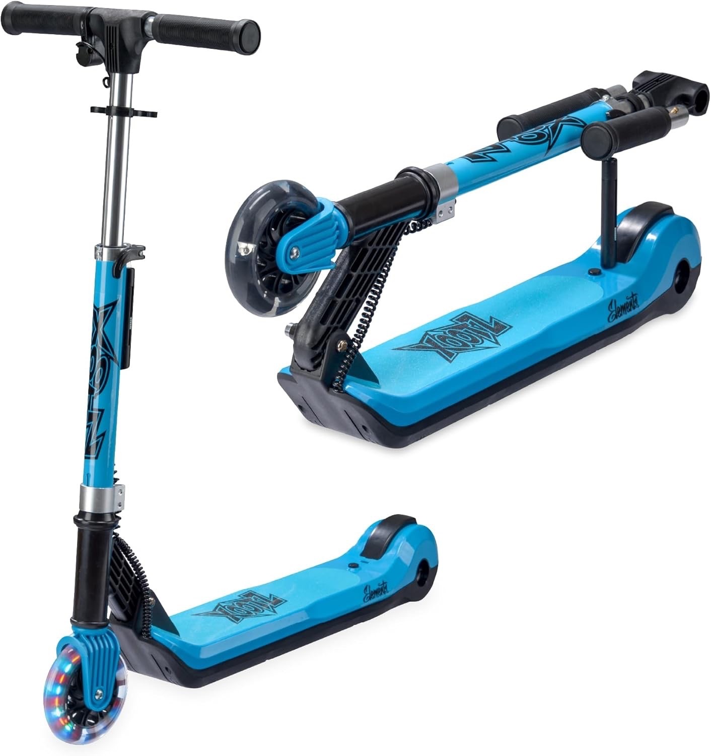 Xootz Kids' Elements Electric Foldable Scooter, LED Light Up Wheel and Collapsible Handlebars, Age 6+, Blue
