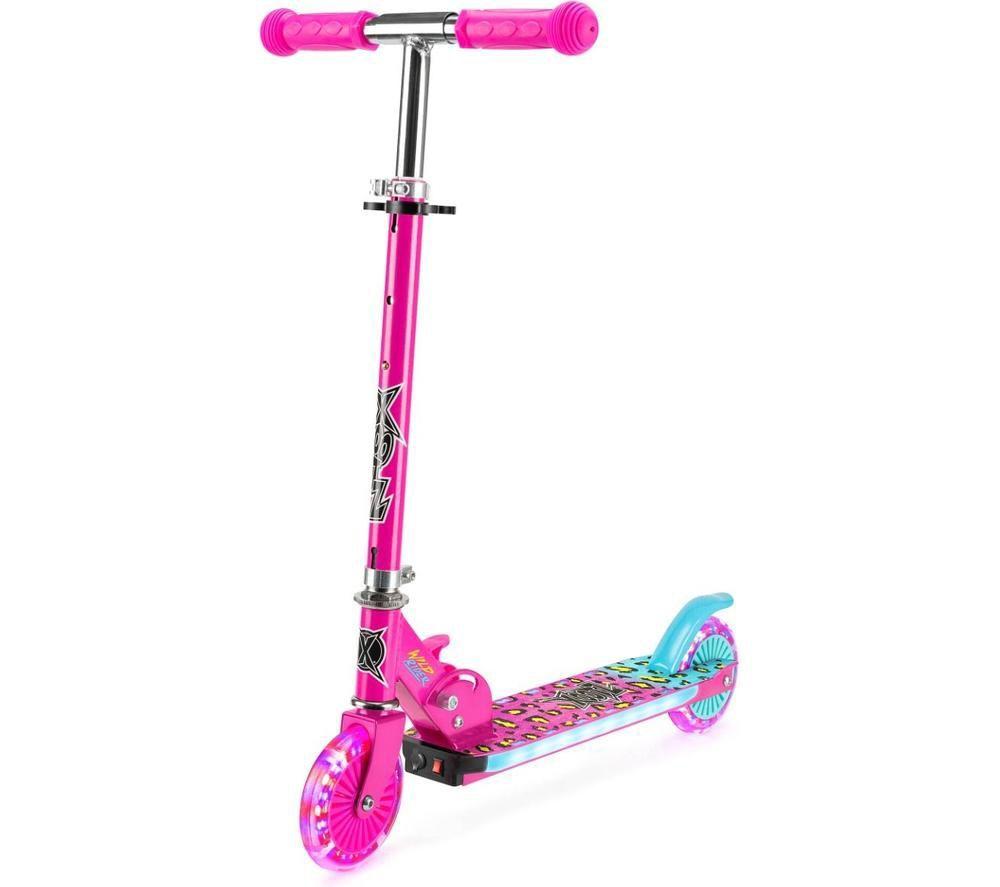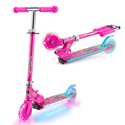 Xootz Wild Rider Light Up LED Scooter | Pink Leopard Folding Light Up Scooter with LED Deck, Pink and Blue, for Kids Ages 5+
