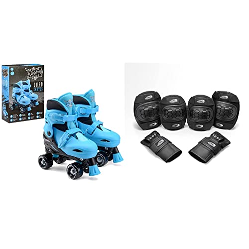 Xootz Kids Quad Skates, Beginner Adjustable Roller Skates Boys, Blue/Black & Osprey Kids' Skate Bmx Pads - Knee, Elbow and Wrist Protective Set - 6 Piece Scooter Streetsport Pad Set - Black - Medium