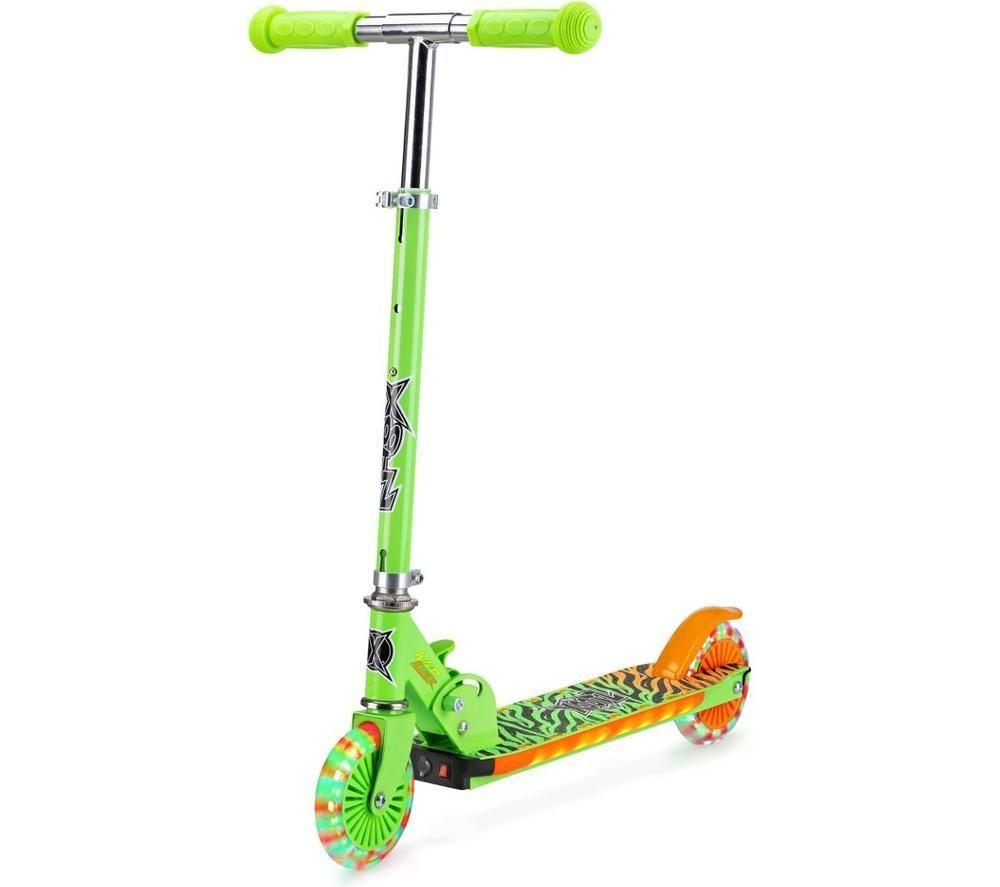 Xootz Wild Rider Light Up LED Scooter | Green Tiger Folding Light Up Scooter with LED Deck, Green and Orange, for Kids Ages 5+