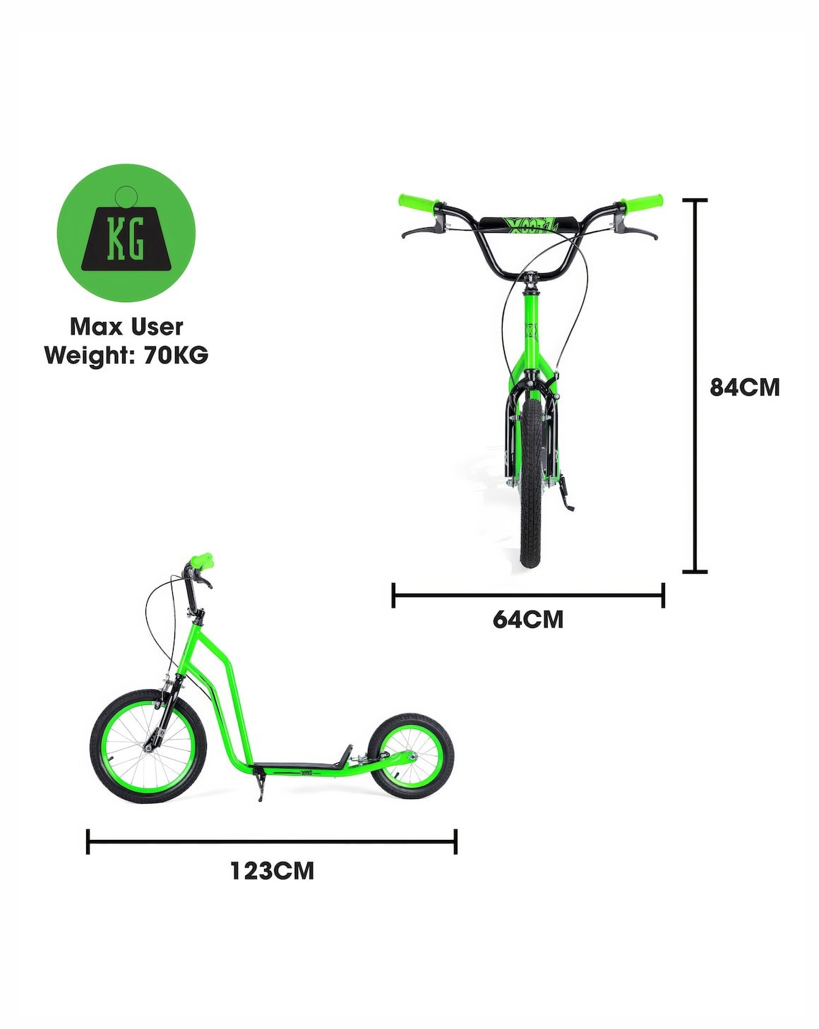 Xootz Kids BMX Scooter Green Two Wheel Stunt Bike Pneumatic Tyres Outdoor Ride