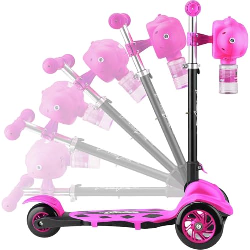Xootz Kids Bubble Go Foldable Scooter, 3 Wheel Tri-Scooter with Bubble Machine, Tilt-and-Turn, Age 3+, Pink