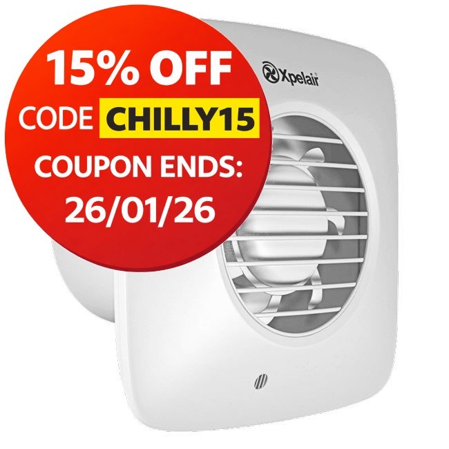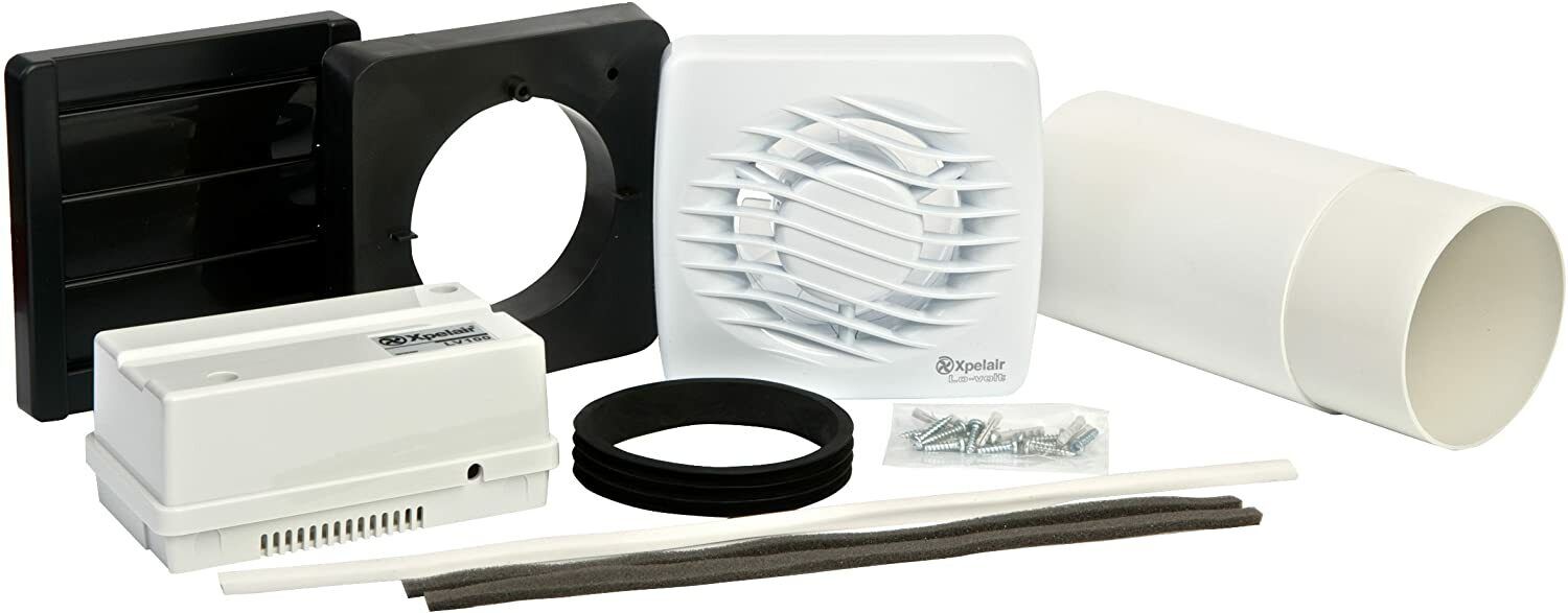 Xpelair Bathroom Extractor Fan with Timer & Wall Kit 100mm Round - Simply Silent