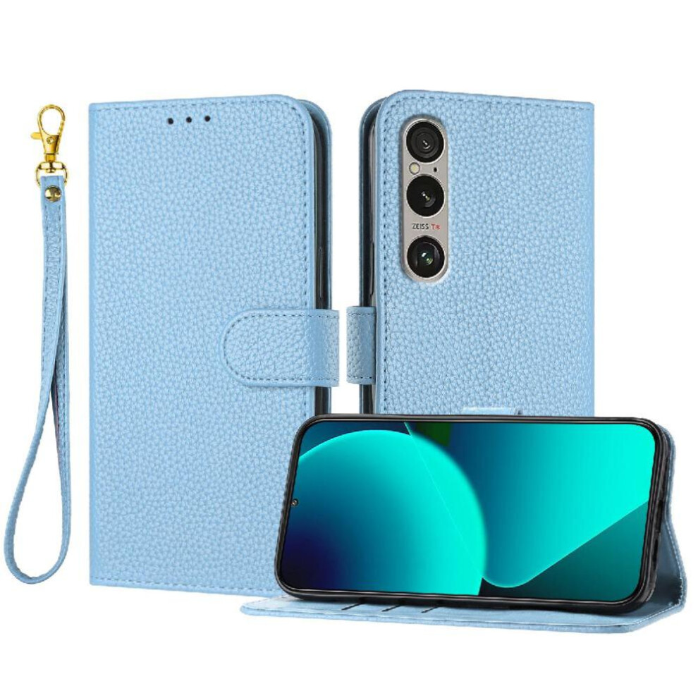 (Light blue) Phone Case for Sony Xperia 1 Vi 2024 Pu Lether Litchi Pattern Flip Folio Card Slots Holder Wallet