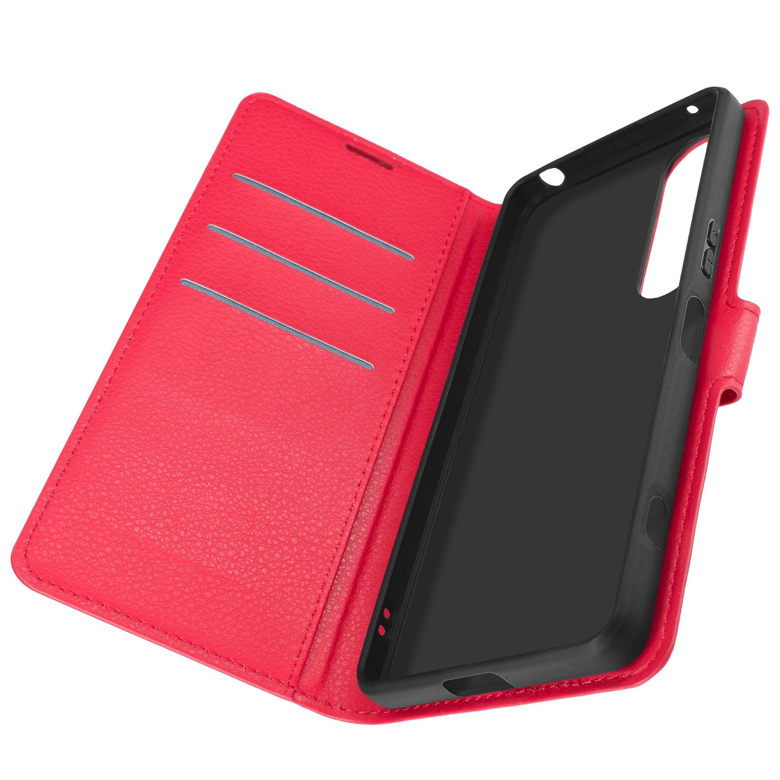 (Red) Phone Case for Sony Xperia 1 Vi 2024 Pu Lether Litchi Pattern Flip Folio Card Slots Holder Wallet