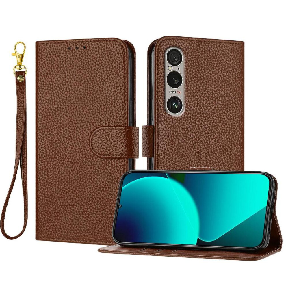 (Brown) Phone Case for Sony Xperia 1 Vi 2024 Pu Lether Litchi Pattern Flip Folio Card Slots Holder Wallet