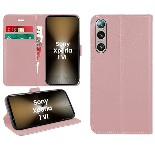 DN-Technology For Sony Xperia 1 vi Case Flip with Card Holder Slots Leather Wallet Book Kickstand Shockproof Protective Phone Cover for Xperia 1 6th Gen (Mark VI) (ROSE GOLD)