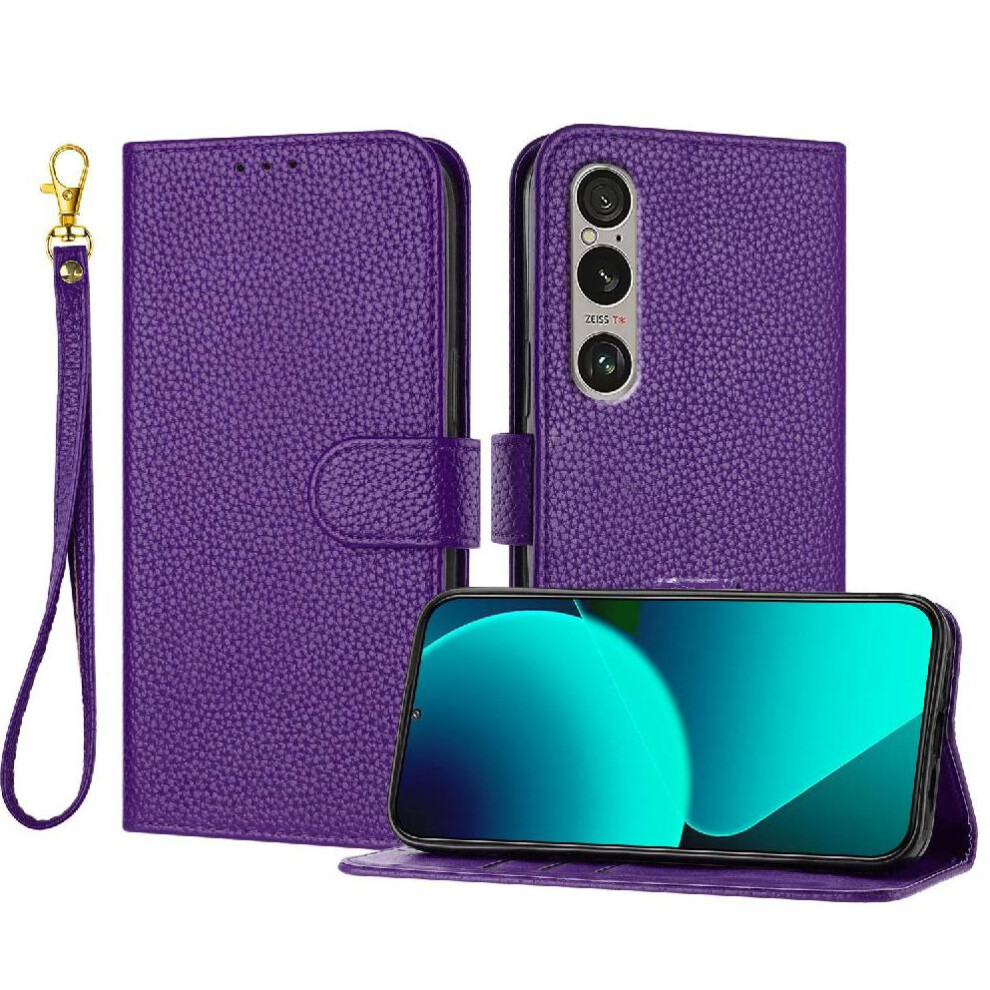 (Purple) Phone Case for Sony Xperia 1 Vi 2024 Pu Lether Litchi Pattern Flip Folio Card Slots Holder Wallet