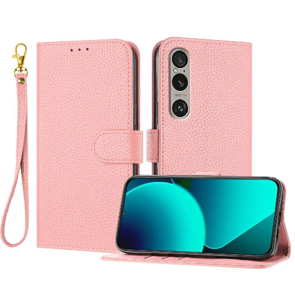 (Pink) Phone Case for Sony Xperia 1 Vi 2024 Pu Lether Litchi Pattern Flip Folio Card Slots Holder Wallet