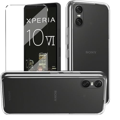 HuiYouMY 2-in-1 Case Compatible with Sony Xperia 10 VI Cover with 1 Pack Tempered Glass Screen Protector for Sony Xperia 10 VI, Slim Fit Soft TPU Shockproof Anti-Scratch Phone Case Cover - Clear