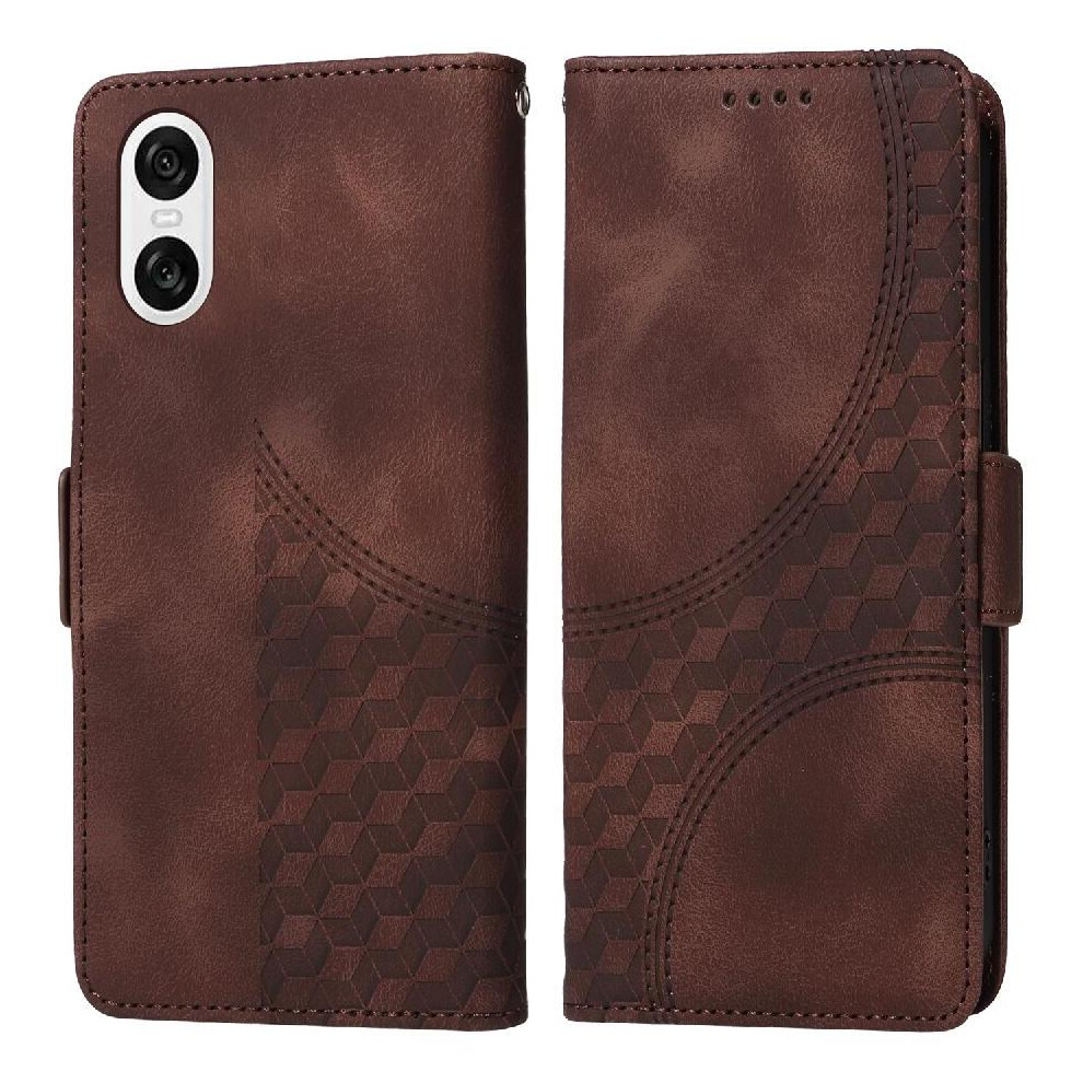 (Brown) Case for Sony Xperia 10 Vi Card Slot Holders Protective Cover Quilted Pattern Leather