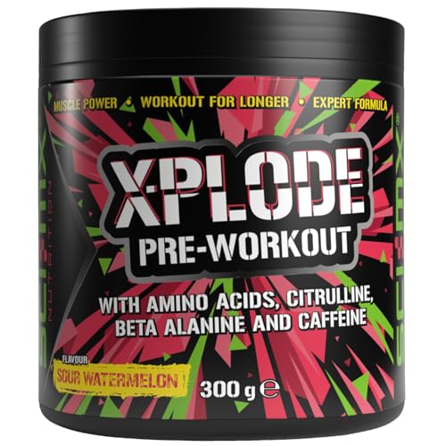 SCI-MX - X-PLODE Pre Workout Powder - Sour Watermelon - Amino Acids + 250mg Caffeine • 6g Citrulline Malate • 3.2g Beta Alanine per Serving (20 Servings) - 300g