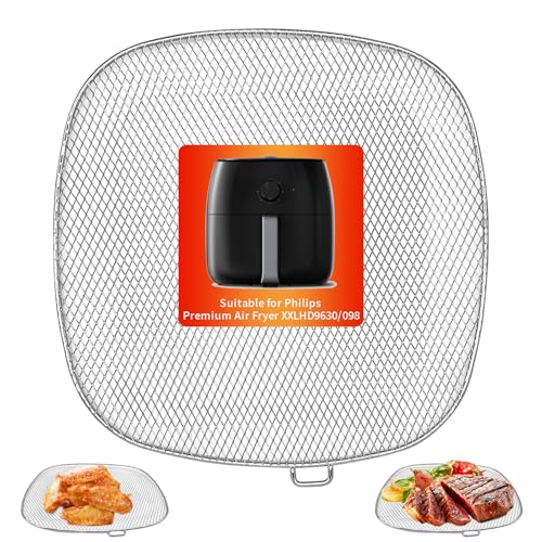 GCQ Air Fryer Accessories for Philips HD9630 3lb/4qt Airfryer XXL, 9”×8.6” SUS 304 Stainless Steel Air Fryer XXL Replacement Parts Basket Tray for Philips HD9650 HD9656 HD9750 HD9860 Air Fryer