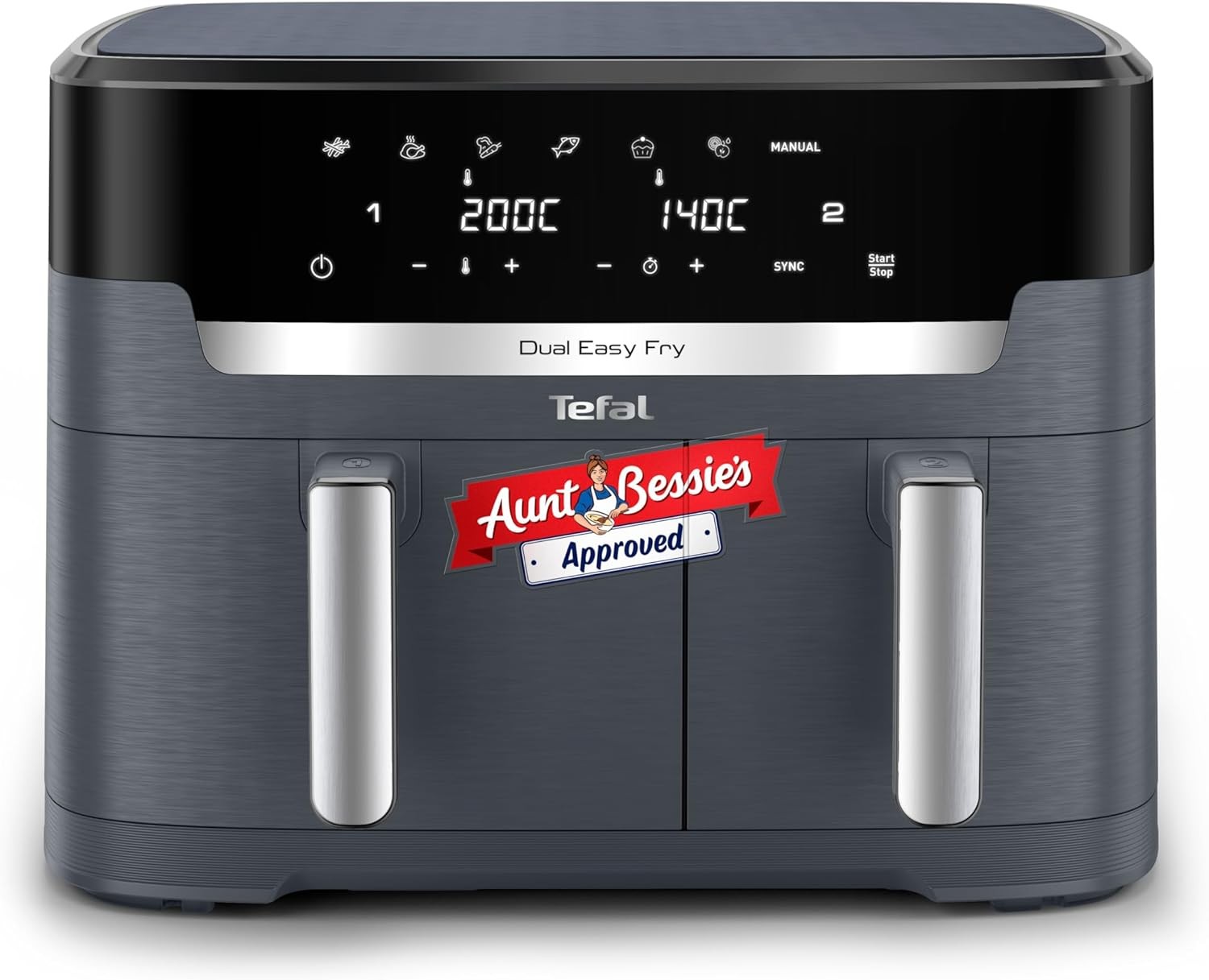 Tefal XXL Dual Easy Fry 11L Air Fryer, Dual Drawer, No Oil, Extra Crisp, Roast, Bake, Reheat, Dehydrate, 7 Pre-set Programs, Dishwasher Safe, 8+ Portions, Java-Grey, EY942BG0