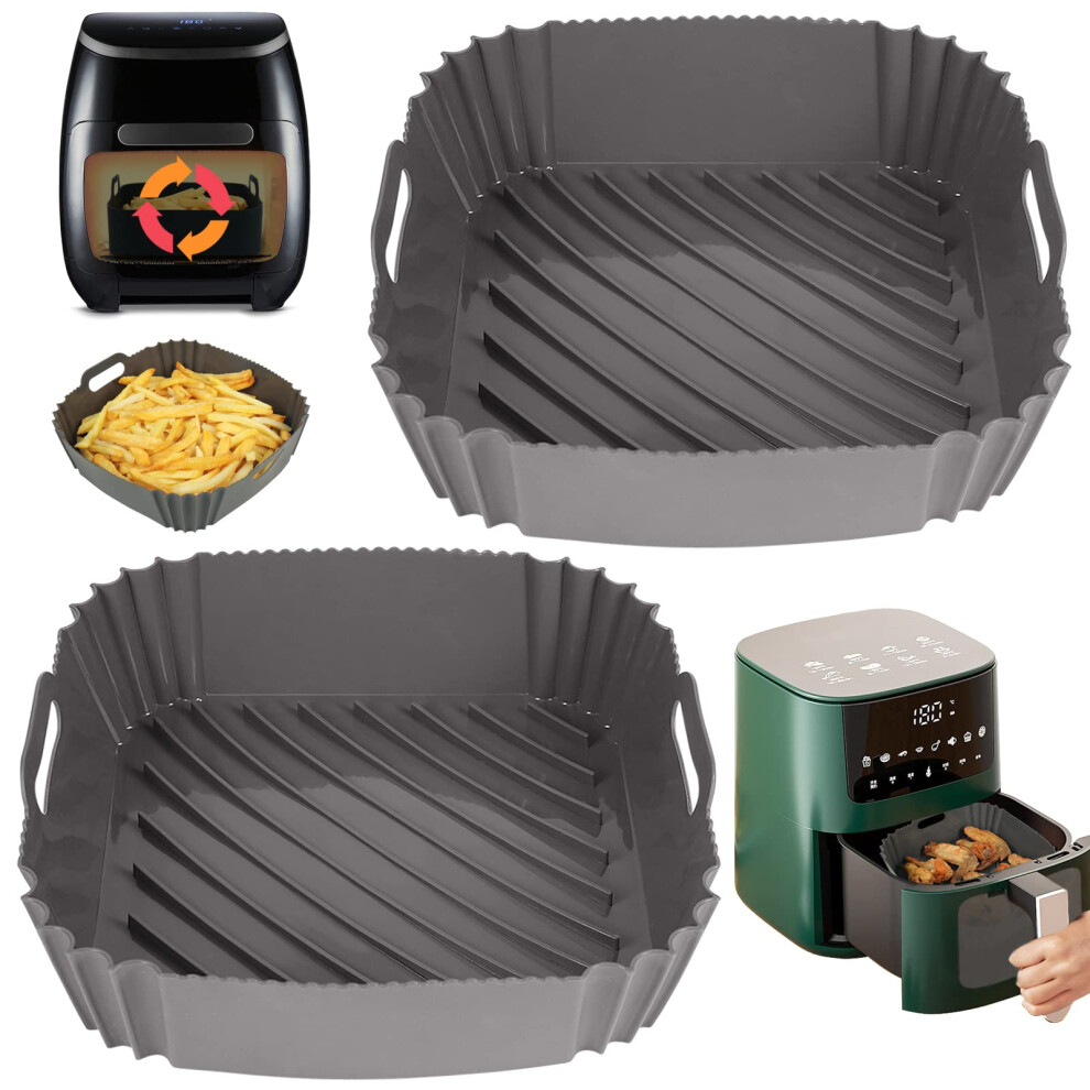 GINOYA 2pcs Large Air Fryer Liners, 21cm XXL Silicone Square Air Fryer Accessories for for Vortex Plus 8.5L, Salter EK4628 XXL 8L, LLIVEKIT 7L Air