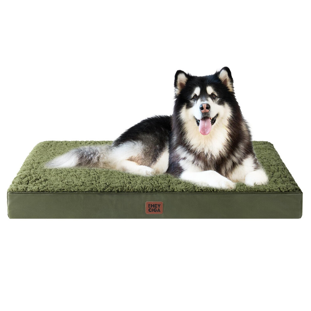 EHEYCIGA Orthopedic XXL Dog Bed Mattress with Removable Washable Cover for Crate, Dark Green, 120x74x9cm