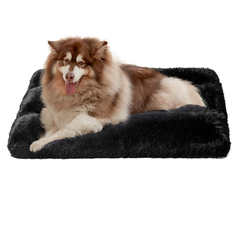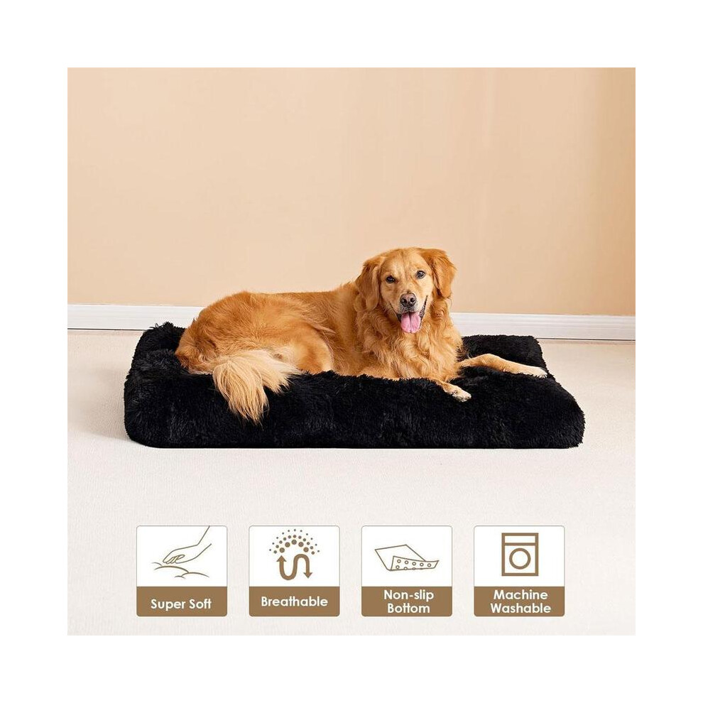 EHEYCIGA Fluffy XXL Dog Crate Bed, Calming Anti Anxiety Pet Bed Washable, Dog Mat Mattress for Crate with Anti-Slip Bottom, Black, 120x90x10cm