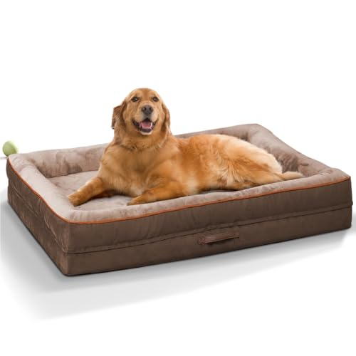 JOEJOY XXL Dog Bed, Orthopedic Memory Foam Dog Beds, Washable Dog Bed, Brown, Fits up to 120lbs, Good for Golden Retriever, Labrador,German Shepherd,Samoye,Rottweiler