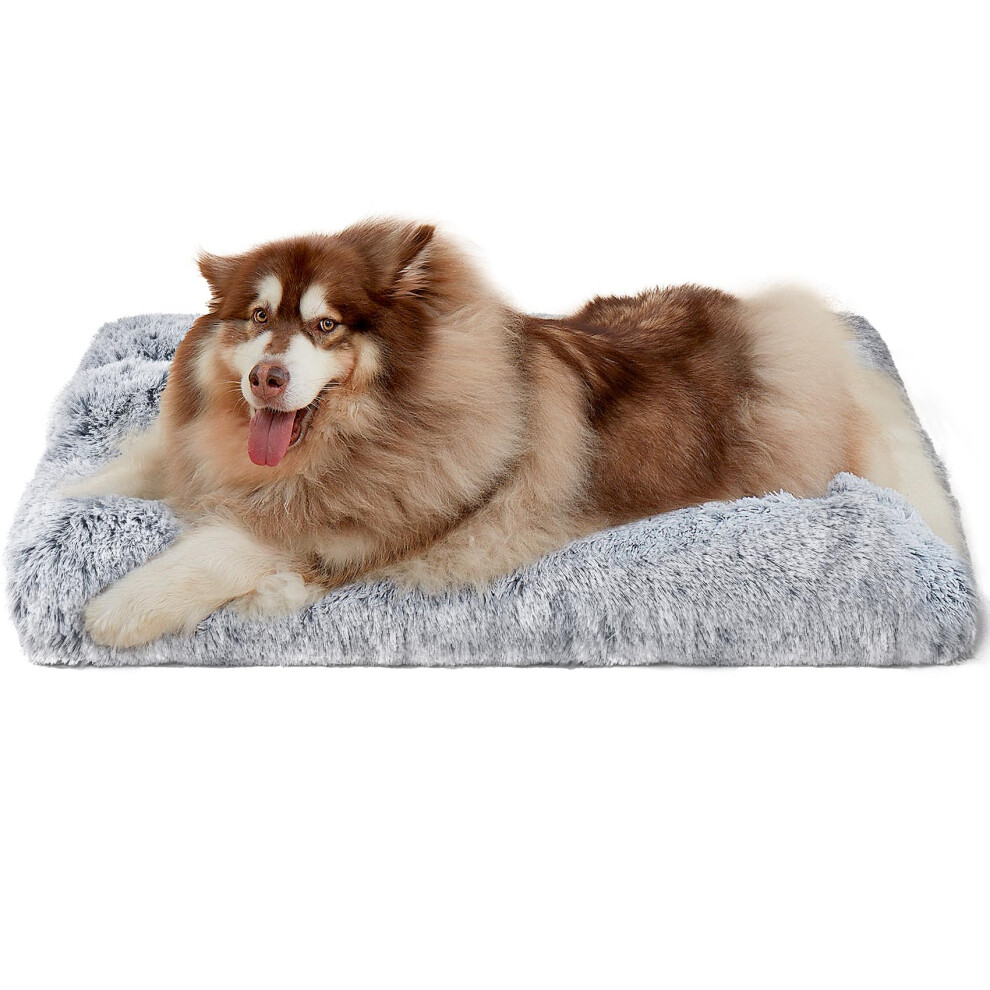 EHEYCIGA Fluffy XXL Dog Crate Bed, Calming Anti Anxiety Pet Bed Washable, Dog Mat Mattress for Crate with Anti-Slip Bottom, Dark Grey, 120x90x10cm