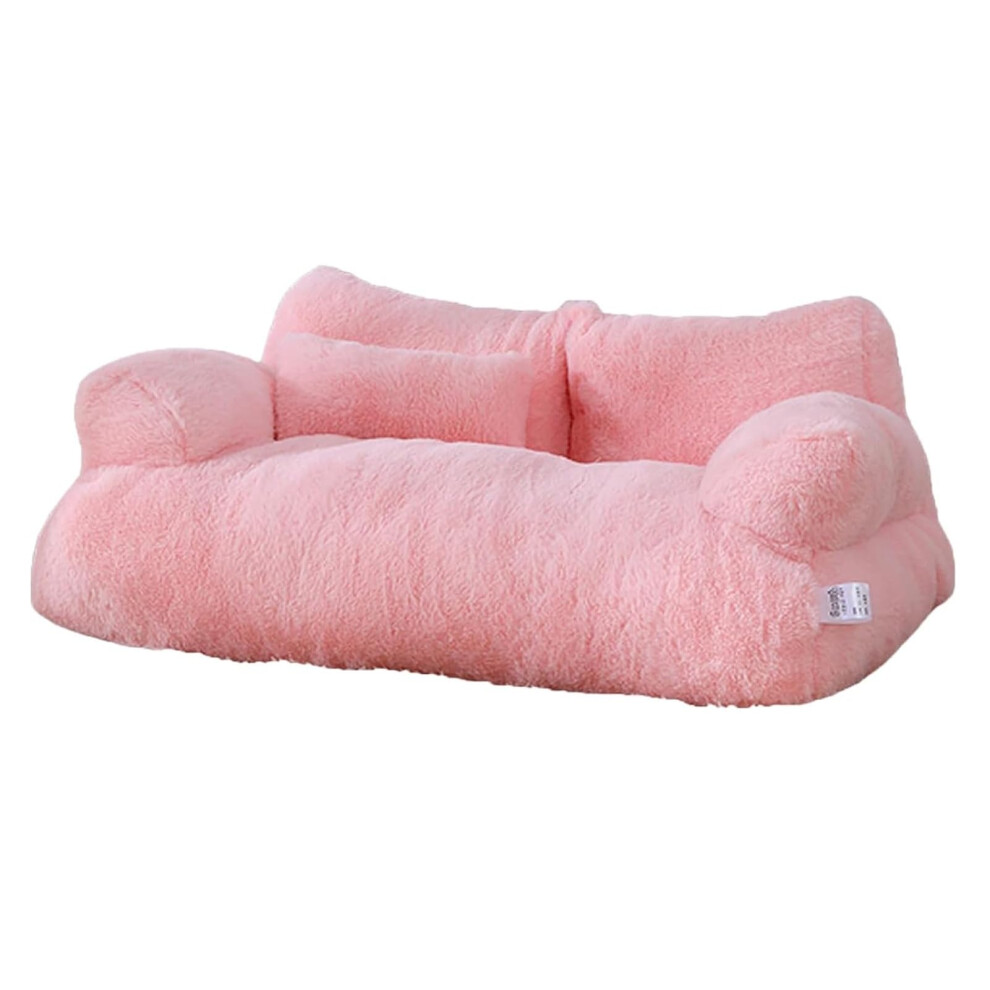 Calming Pet Sofa For Cats And Dogs, Washable Soft Fluffy Plush Couch, Pink XXL Cat And Dog Bed