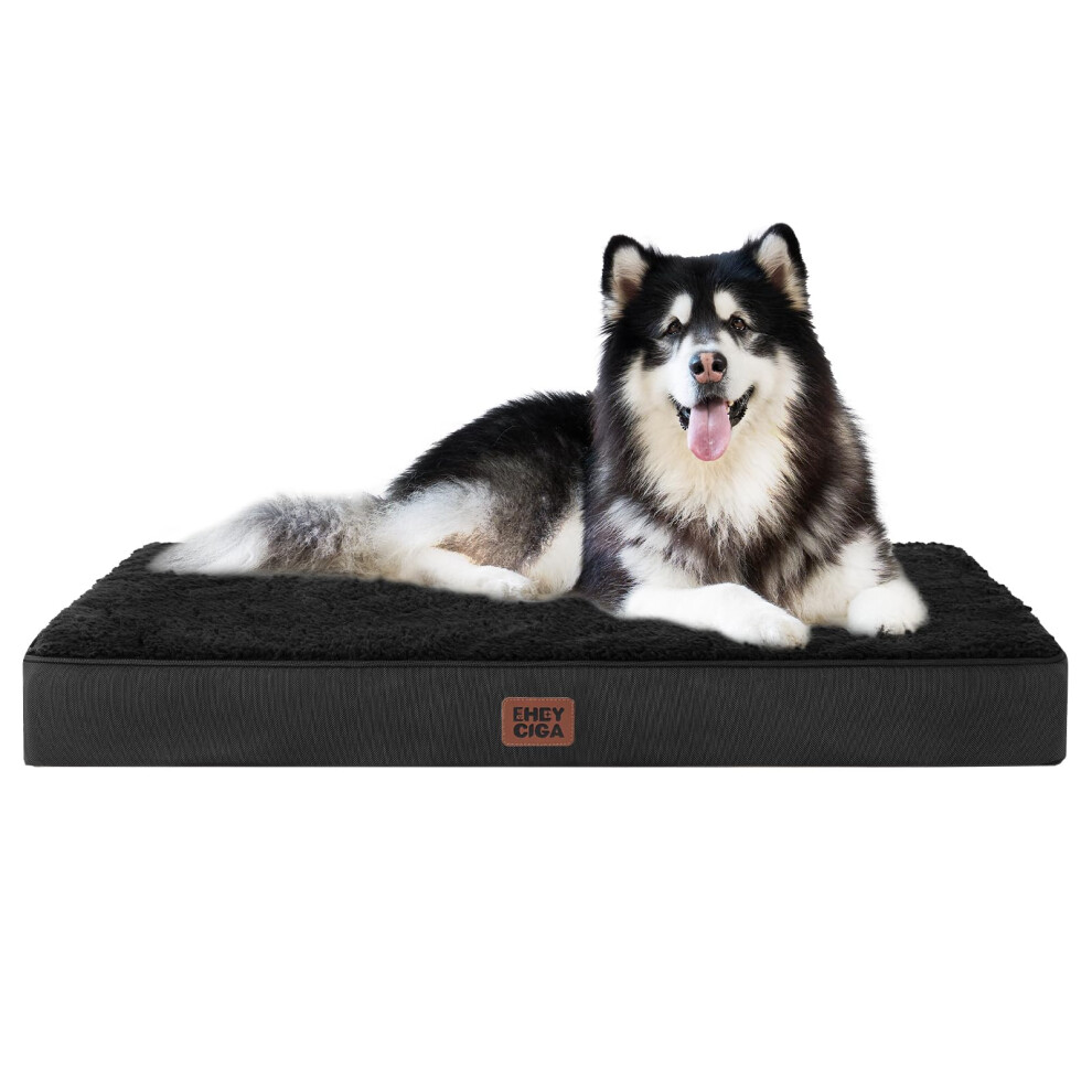 EHEYCIGA Orthopedic XXL Dog Bed Mattress with Removable Washable Cover for Crate, Black, 120x74x9cm